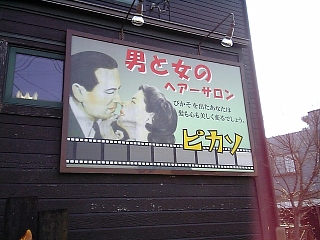 レトロな看板発見。 「ぴかそを出たあなたは髪も心も美しく変るでしょう。」 だそうです。 でも ピカソ ですからねー。 |