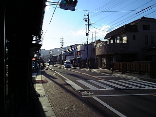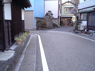 街道が左にカーブする。 そろそろ蒲原宿も終わりかな。 |