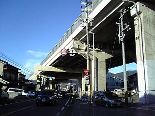 やがてせまりくる東名高速道路の高架。 そのままくぐって、ゴー、ゴー! |