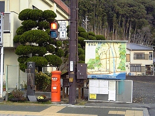 興津文化財地図の看板。 旧型の郵便ポストと夢舞台道標興津宿もある。 すでに興津宿のド真ん中!? このあと興津宿東本陣址や 脇本陣 水口屋跡などを過ぎる。 |