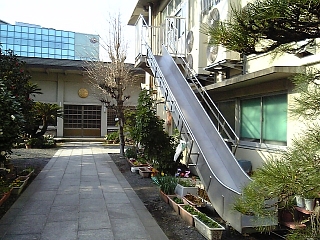 15:38 またまた少し寄り道して華陽院。 ![]() 実は幼稚園だったりする。 2階からすべり台?? 遊具と実益を兼ねた一石二鳥だ。 |