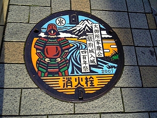 甲冑デザインのカラーマンホール。 今年バージョンだ。 |