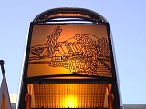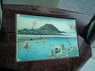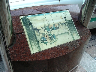 16:53 呉服町交差点で呉服町通りに入る。 東海道五十三次の浮世絵オブジェ。 日本橋だ。なつかしー。 上部は行燈風の街灯になってる。 |