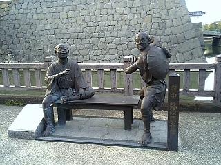 巽櫓手前の弥次喜多像。 東海道沿いに置いてくれー。 |