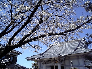 青い空に桜がいい感じの泉秀寺。 春らんまん。 |