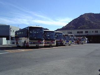 14:31 静岡鉄道のバスターミナル。 並んだバスが壮観。