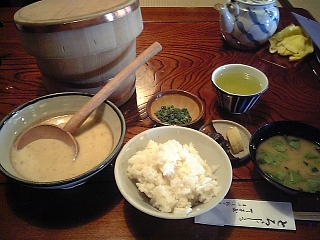 さて、もちろん とろろ汁 を食す。 おひついっぱいのごはん、 全部食べちゃった。 満足、満足。 |