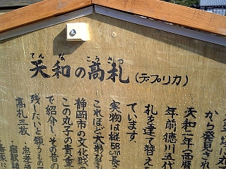 橋を渡ってすぐの高札場。 デ、デプリカ? 朝から大爆笑です。 |
