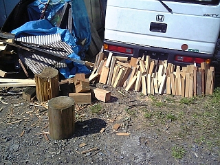 蒔き割り? 今の時代、珍しいなぁ。 ![]() で、この車は・・・? |
