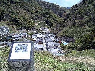途中で宇津ノ谷集落が眼下に見渡せる。 まさにさっき通ってきた東海道。 |