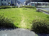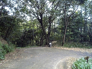 13:32 国道1号から分岐してきた道路に合流。 ![]() 植込みにまっすぐ獣道が。 先輩たちの足跡? |