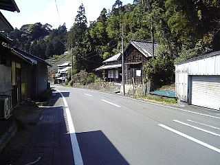 13:18 国道反対側の県道208号を行く。 まだ山村という雰囲気がわずかにある。 |