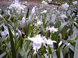 ここから舗装道から離れ左の山道に。 ![]() 周辺には花がいっぱい。 シャガという花らしい。 |