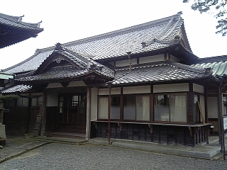 庫裡。 田沼意次の相良城から移築したとか。 なかなか立派です。 窓ガラスは江戸時代のものでないと思うが。 |