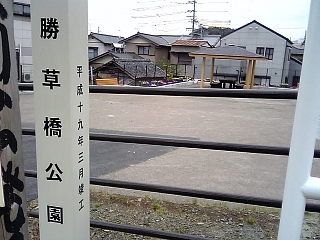 その後ろは勝草橋公園。 四阿、ベンチ、トイレなどがある。 平成十九年三月竣工って出来たばかり。 |