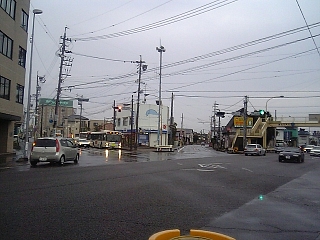 五叉路の青木交差点。 正面が東海道。 その左が藤枝駅へ向かう道。 |