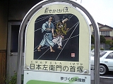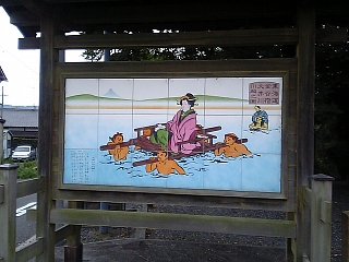 金谷宿に入りました〜。 バス停には名所イラストが。