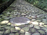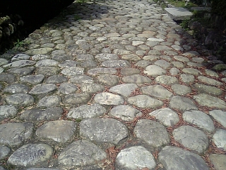 でもなんかおかしい。。。 道が3本並行してる。 ヤダー、こんな石畳道。 |