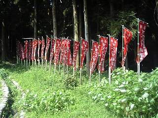 森の中に突如あらわれるすべらず地蔵の幟。 これも雰囲気的にどうだろう? |
