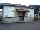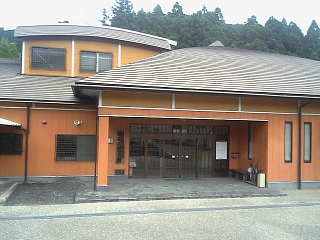 11:09 菊川の里会館。 2階が駕籠のような形をしてるー。