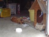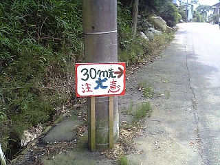 その先にはこんな表示! うわっ。どんな恐ろしい犬がいるのー?