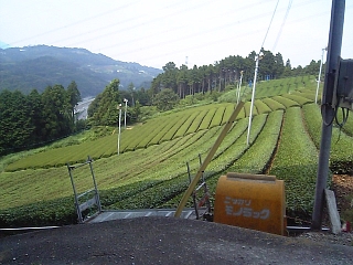 石碑だけでなく風光明媚な茶畑も続く。。。 やはり、ここは一首詠んでおくべき? なんて脅迫観念が。 |