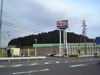 ガソリンスタンド どんだけ〜。 背後には雌鯨山。確かに鯨に似てる。 あれ、似てない? そんな目くじらたてなくても・・・。 |
