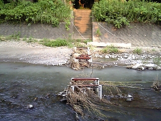 川、渡れません! 境内に行けません!