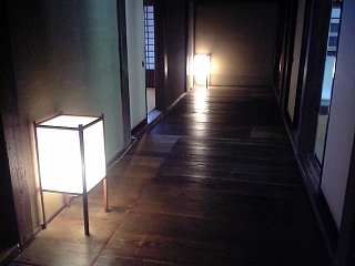 奥にはちゃんと板の間の廊下もある。 昼間でも明かりが灯ると雰囲気いいねー。 |