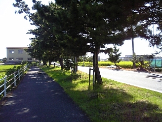 原川松並木を行く。 例によって外側に歩道だ〜。