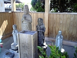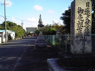 袋井松並木などを過ぎ妙日寺に寄る。 石柱にある通り日蓮の先祖に縁がある寺。 由緒ありますなぁ。 |
