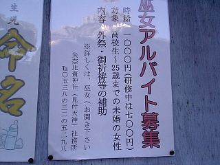 飼育員、じゃなかった、巫女さん募集中! 時給1000円ですよー。 |