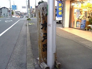 西木戸跡を通過。 看板が電柱に隠れてますよー。 何とかしてー。 |