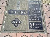 斜め向かいの脇道。 歩道に説明石板がある。 |