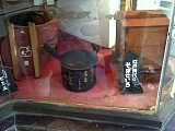 店頭には古い食器が。 江戸時代のものらしい。 |