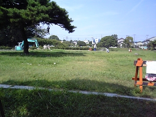 さて公園内を見学〜。と思いきや、 こ、工事現場?
