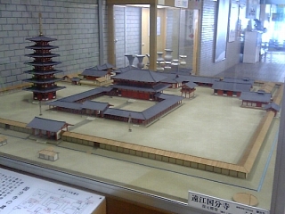 公園の隣の磐田市役所ロビー。 国分寺の模型が。 100分の1だそうです。 |