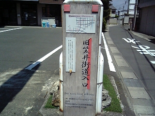 旧笠井街道入口。 浜松市街地限定の史跡立札。 ただの木杭よりは気合が入ってる。