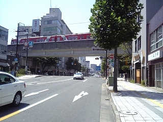 12:41 夢告地蔵尊を過ぎ万年橋が見えてきた。 川の上に電車が走ってる。 |