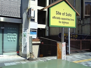 14:27 東海道に戻り佐藤本陣跡。 車道側から見ると看板は英語! 車で通る外人に親切だなぁ。 |