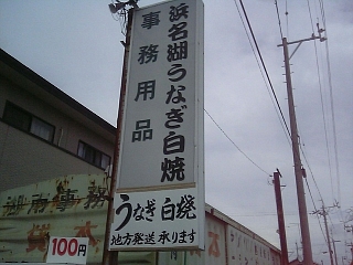 中屋敷跡を過ぎるとうなぎ白焼屋さん。 でも何で事務用品も? しかも貸本もやってる? 多角経営だなぁ。 |