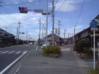 10:25 前回終了地点の教恩寺前の交差点。 東海道はここを右に入っていく。 さぁ、レッツゴー! |