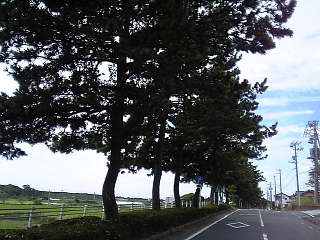 紅葉寺跡を過ぎ松並木を行く。 復元された並木なのでまだ細いね。 |