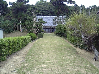 土手っぽい芝生の参道が斬新? |