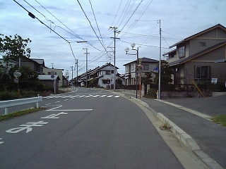 学校を過ぎると住宅街。