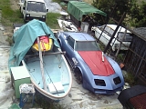海でもないのにボートが何隻もある。 スクラップ置き場?