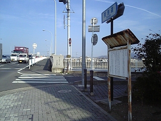 12:15 豊橋に来ました〜。 右にあるのは船町と高札場の説明板。 東海道は橋を渡らず左折する。