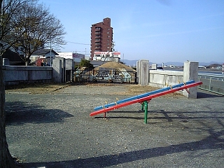 左折して川沿いを少し行くと小公園。 旧:吉田大橋跡。