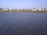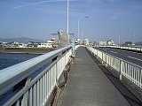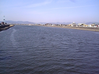 橋の途中で豊川を覗く。 広いなー。 天気いいなー。 |