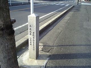 13:18 下地一里塚跡の石柱。 なんで車道側に向いてるのかなぁ。 |